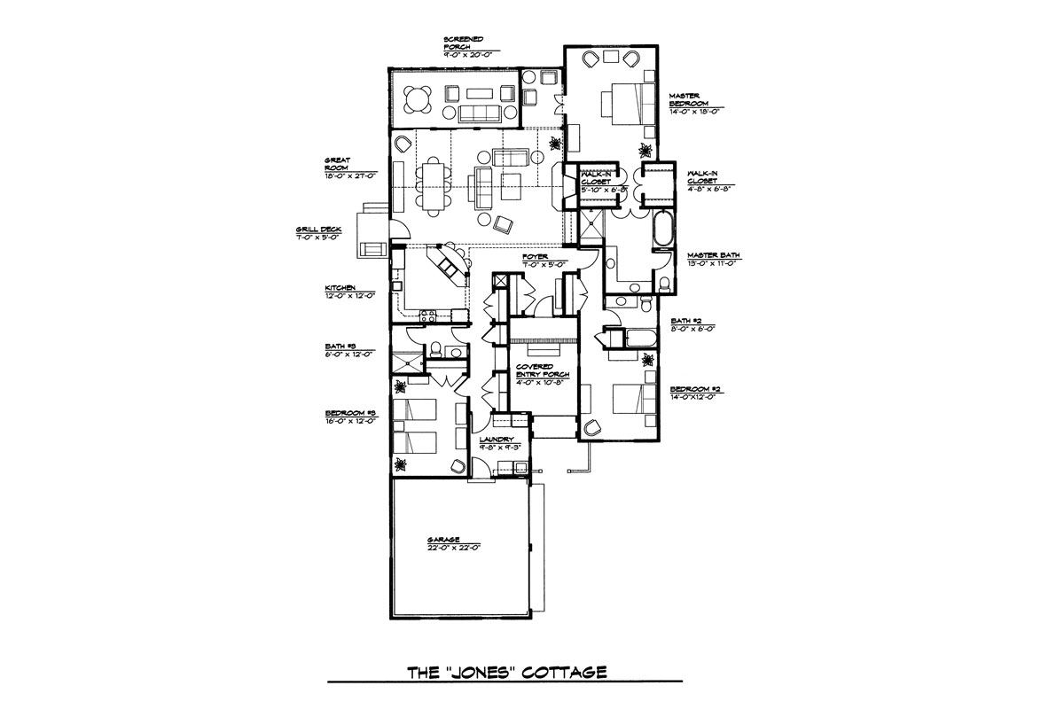 Designed by award-winning architects Stagaard and Chao and beautifully built the Jones Cottage at Champions Ridge features a modern open floor plan and plenty of living space. This home features a large great room, covered entry porch, screened porch, grill deck with natural gas grill drop, foyer, laundry room next to the garage, 3 bathrooms and 3 bedrooms, with the master bedroom featuring with a walk-in closet and master bathroom.